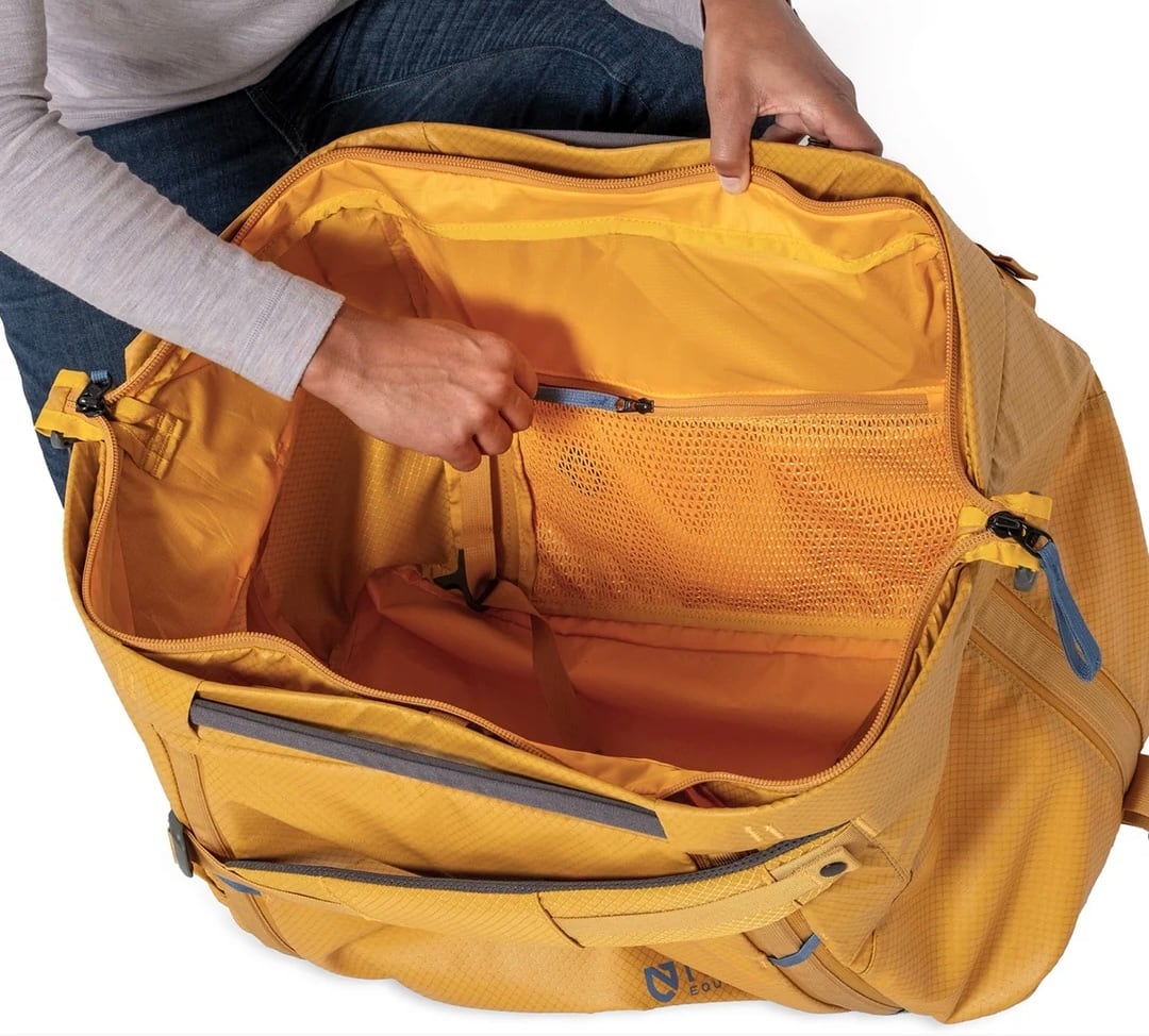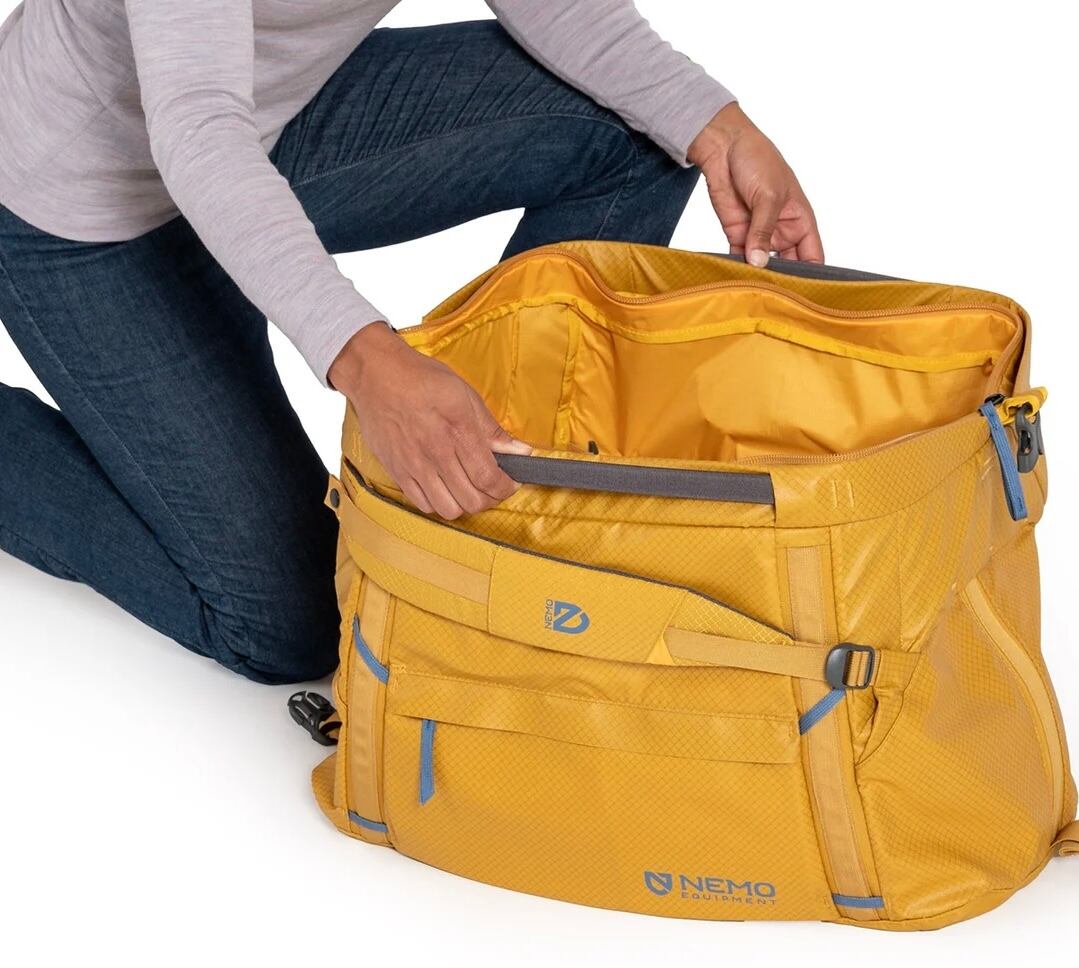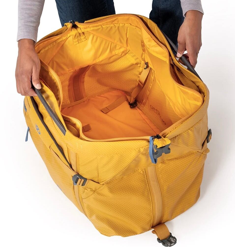 独自のトラス構造に剛性を持たせることで、開口部を大きく開いたままキープでき、パッキング作業が非常にスムーズに行えます。さらに、このトラス部分は、ダッフルの外側でダメージを受けやすい箇所を保護する役割も果たしており、耐久性と使いやすさを両立したデザインとなっています。