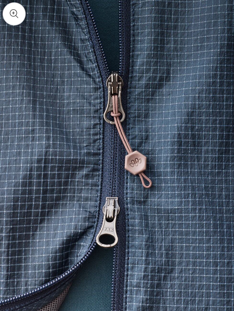 ジッパーはダブルスライダー仕様で下から開けばベンチレーションとして機能。クライミングハーネスの着用にも対応。