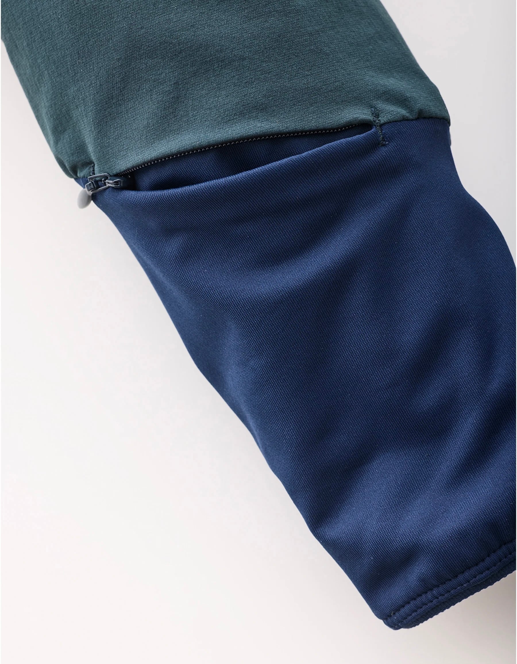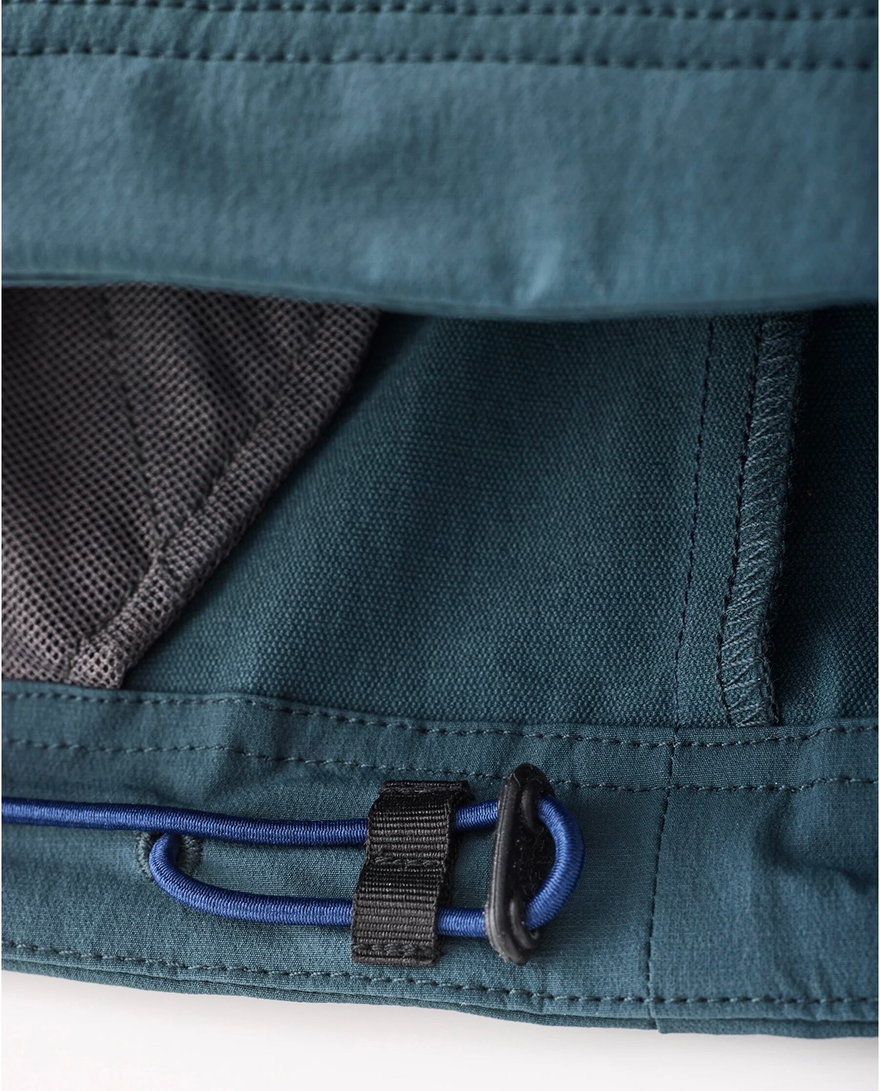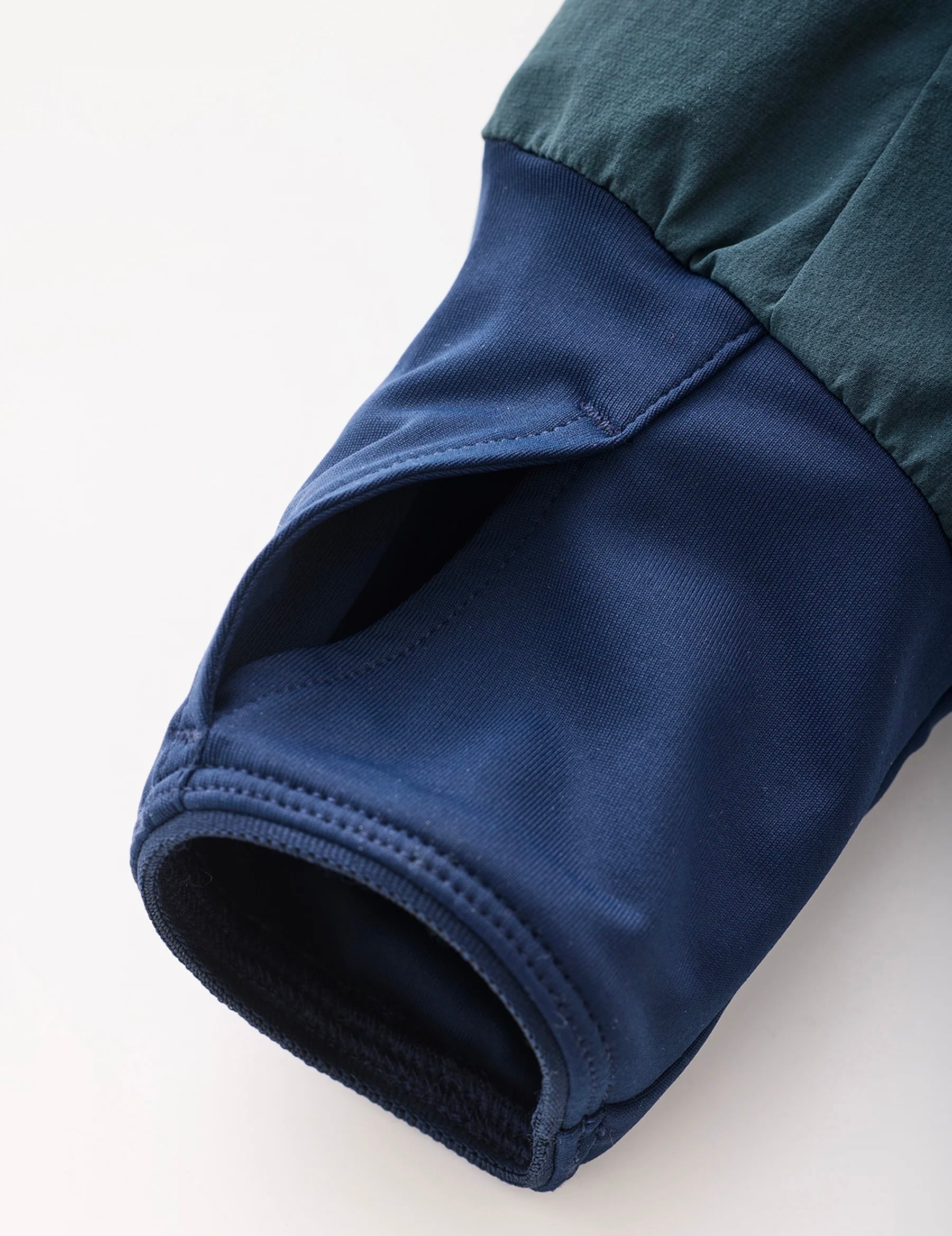 冬のマウンテンランニングを想定した新作。防風性、通気性、保温性、運動性に配慮したジャケットです。メインの素材は、通気性とストレッチ性に優れ、汗をかいたときも肌離れが良いソフトシェル。胸の部分は風を防ぐHPPE(ハイパフォーマンスポリエチレン)のリップストップ生地で、「PrimaLoft ThermoPlume」に断熱効果の高いエアロゲルをミックスした中綿を充填し、体幹部分の保温性を高めています。腕の振りを妨げない細身のシルエットで、両サイドにベンチレーション兼用の大型ポケット、右手首に小銭や鍵などを入れられるジッパー付きのポケット、左手首にはウォッチウィンドウを装備。ランニングだけでなく、寒冷下の自転車や冬山のミッドレイヤーとしても使える一着です。