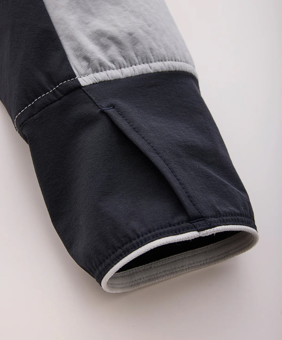 袖口にはサムホールを配置。手の甲の保温性を高め、レイヤリング時の袖のずり上がりを防ぐ。