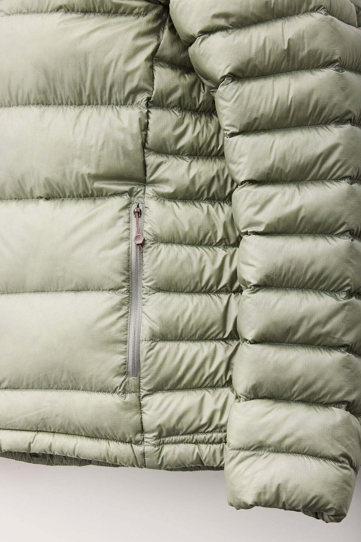 保温性と収納性のバランスが良く、静的保温性重視のミッドレイヤーとしても、単体で着るアウターとしても使えるミッドウェイトのダウンです。フィールドでも街でも、冬はもちろん夏の高山でも、さまざまなシチュエーションで使用可能。中綿にアライド社製850フィルパワー撥水ダウンを100g充填。今季は表生地を変更するとともに、ダウンのロフトを最大限に活かせるようにキルトデザインを見直しました。体幹部はキルト幅を大きくしてデッドエアを蓄え、よく動く腕や擦れやすいサイドは幅を狭くしてダウンの偏りを抑えています。