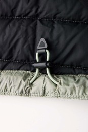保温性と収納性のバランスが良く、静的保温性重視のミッドレイヤーとしても、単体で着るアウターとしても使えるミッドウェイトのダウンです。フィールドでも街でも、冬はもちろん夏の高山でも、さまざまなシチュエーションで使用可能。中綿にアライド社製850フィルパワー撥水ダウンを100g充填。今季は表生地を変更するとともに、ダウンのロフトを最大限に活かせるようにキルトデザインを見直しました。体幹部はキルト幅を大きくしてデッドエアを蓄え、よく動く腕や擦れやすいサイドは幅を狭くしてダウンの偏りを抑えています。女性の体型に合わせてパターンを採用しています。
