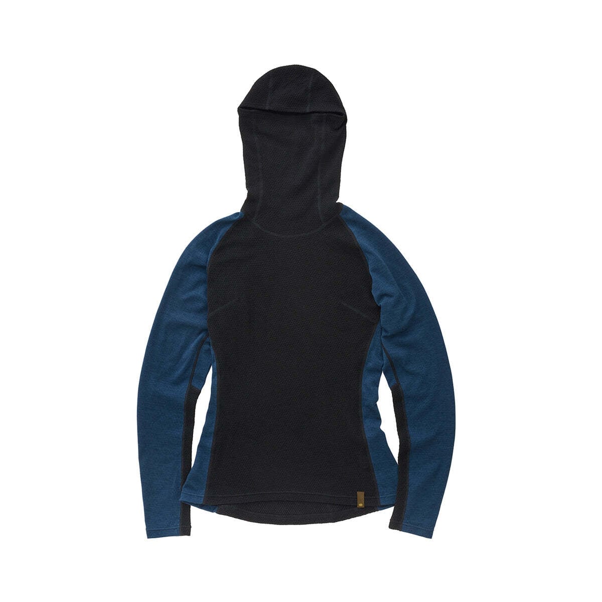 MOB Wool と Axio 3D をハイブリッドした新シリーズの高機能フーディ。発汗部位には通気性の高いMOB Wool、冷えやすい部分には保温性に優れたAxio 3Dを配置。フードはバラクラバ仕様でポニーテールホール付き。六角形構造の新編地により保温性と速乾性が向上し、トレイルランからスキーの様々なアクティビティに活躍する汎用の高い一枚。