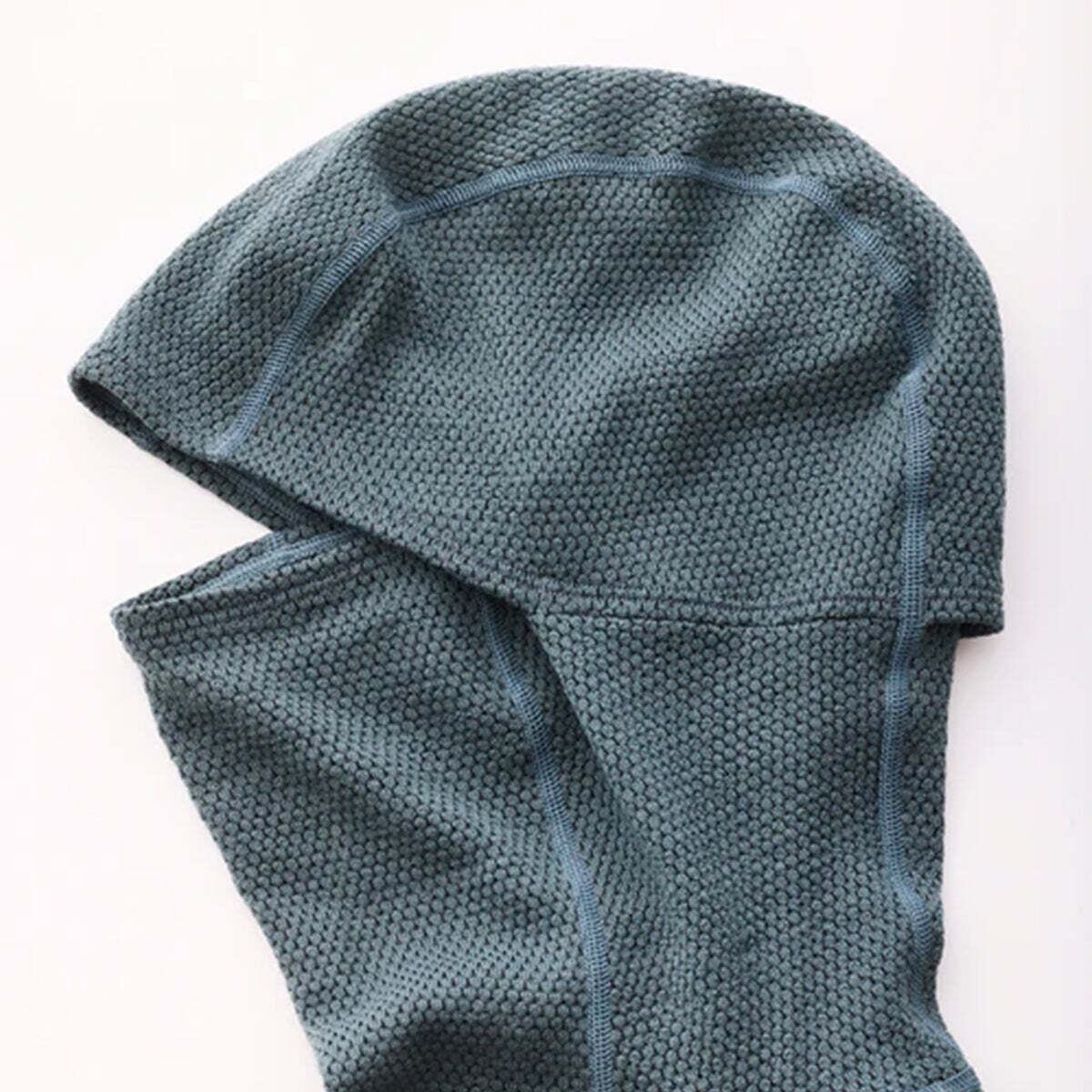 フードはバラクラバとしても使えるフィット感を備え、後頭部にはポニーテールホール付き。肌面にはポリプロピレンをフレーム状に編み込み、今季からは六角形構造にアップデート。保温性と速乾性が大きく向上しました。甘く編まれた生地が多くの空気を含み、動けば素早く換気、重ね着すればデッドエアを保持して保温性を高めます。軽量で機能性に優れ、アクティビティから日常まで活躍する一着です。