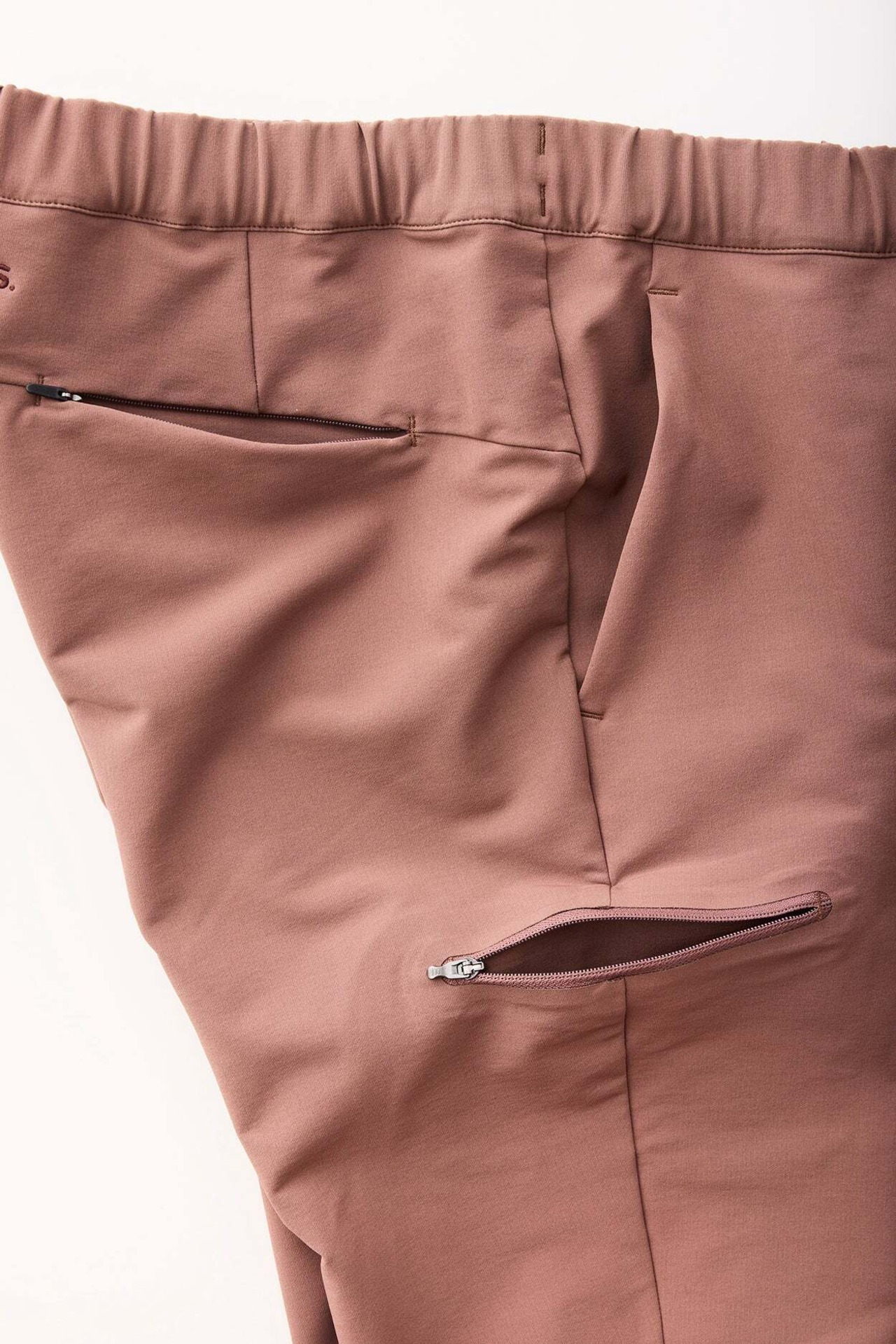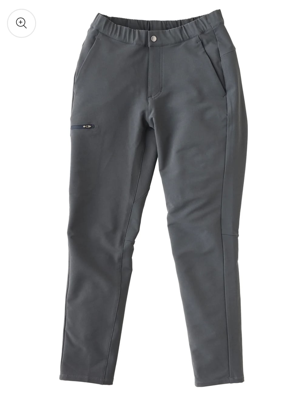 オールシーズン使えるベーシックなトレッキングパンツです。素材は「Graphene Softshell」。遠赤外線効果と優れた熱伝導性を兼ね備える「Graphene」を織り込んだ生地で、低温時には保温、高温時にはクーリング効果を発揮します。今季はパターンを見直し、動きやすさは損なわずにステッチを最小限に抑えて耐久性を高めました。見た目もシンプルになり、普段使いもしやすくなっています。メンズモデルは細身のベルト。女性用のWS CRAG PANTはシリコンの滑り止めが付いたコードでウェストの調整が可能です。