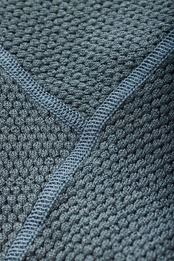 甘く編まれた生地はたっぷりと空気を含み、レイヤリングで重ね着をすればデッドエアとなって暖かい。隙間の多い生地は通気性が高く、換気をすることで素早くクールダウンできる。
