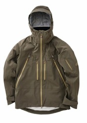 18度目の冬を迎えるブランドの原点にしてフラッグシップモデルです。初代から変わらぬコンセプトは、バックカントリーのいかなる場面でもストレスなく行動できるプロテクションシェル。完全防水と通気性を両立した「Täsmä」を使用し、現状では最高水準の撥油性を兼ね備える撥水加工を施しています。胸元から脇腹にかけて開く特徴的なベンチレーションは換気効率と操作性を追求したもので、素材の通気性と合わせて蒸れを抑え、ウェア内をドライに保って低体温症のリスクを軽減します。大きく動く肩関節のROM(Range of Motion=可動域)を考慮した立体裁断は、滑り手のどんな動きも妨げずに追従。今季はフードや裾の折り返し部分を表生地と揃えて耐久性をさらに高めました。