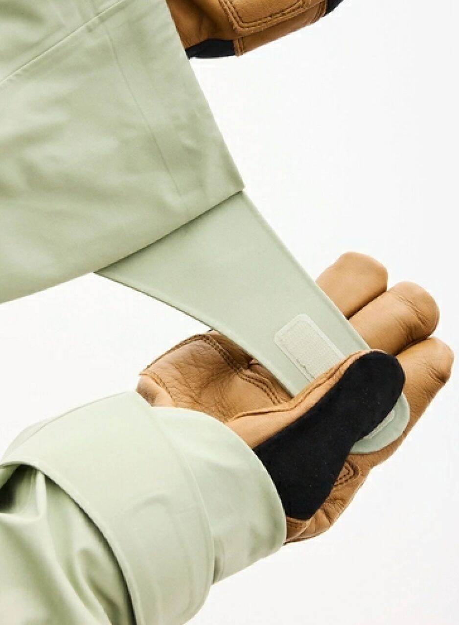 18度目の冬を迎えるブランドの原点にしてフラッグシップモデルです。初代から変わらぬコンセプトは、バックカントリーのいかなる場面でもストレスなく行動できるプロテクションシェル。完全防水と通気性を両立した「Täsmä」を使用し、現状では最高水準の撥油性を兼ね備える撥水加工を施しています。胸元から脇腹にかけて開く特徴的なベンチレーションは換気効率と操作性を追求したもので、素材の通気性と合わせて蒸れを抑え、ウェア内をドライに保って低体温症のリスクを軽減します。大きく動く肩関節のROM(Range of Motion=可動域)を考慮した立体裁断は、滑り手のどんな動きも妨げずに追従。今季はフードや裾の折り返し部分を表生地と揃えて耐久性をさらに高めました。