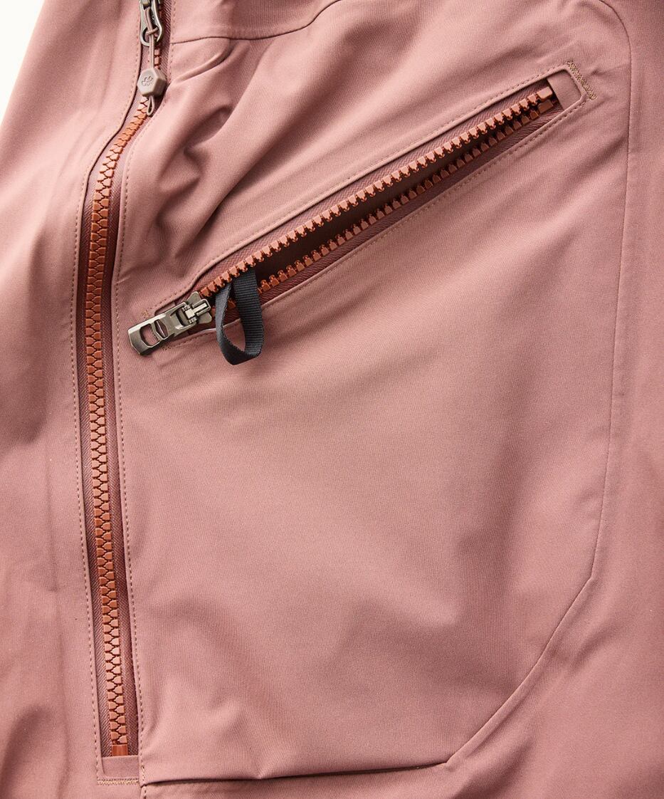 バックカントリーのいかなる場面でもストレスなく行動できるビブパンツです。完全防水と通気性を両立した「Täsmä」を使用し、現状では最高水準の撥油性を兼ね備える撥水加工を施しています。太すぎず、細すぎないシルエットと素材がもつ伸縮性を最大限に活かしたカッティングにより、大きく脚を動かす登りでも、素早く動く滑りでも、その動作を妨げません。機能面での最大の特徴はビブを取り外せること。春先などにビブを外してパンツとして使用できます。ウェストのファスナーは片手で簡単に操作でき、パンツと同じ感覚で用足しできるのもポイント。大きく開くサイドベンチレーションによって行動中のオーバーヒートを防ぎます。