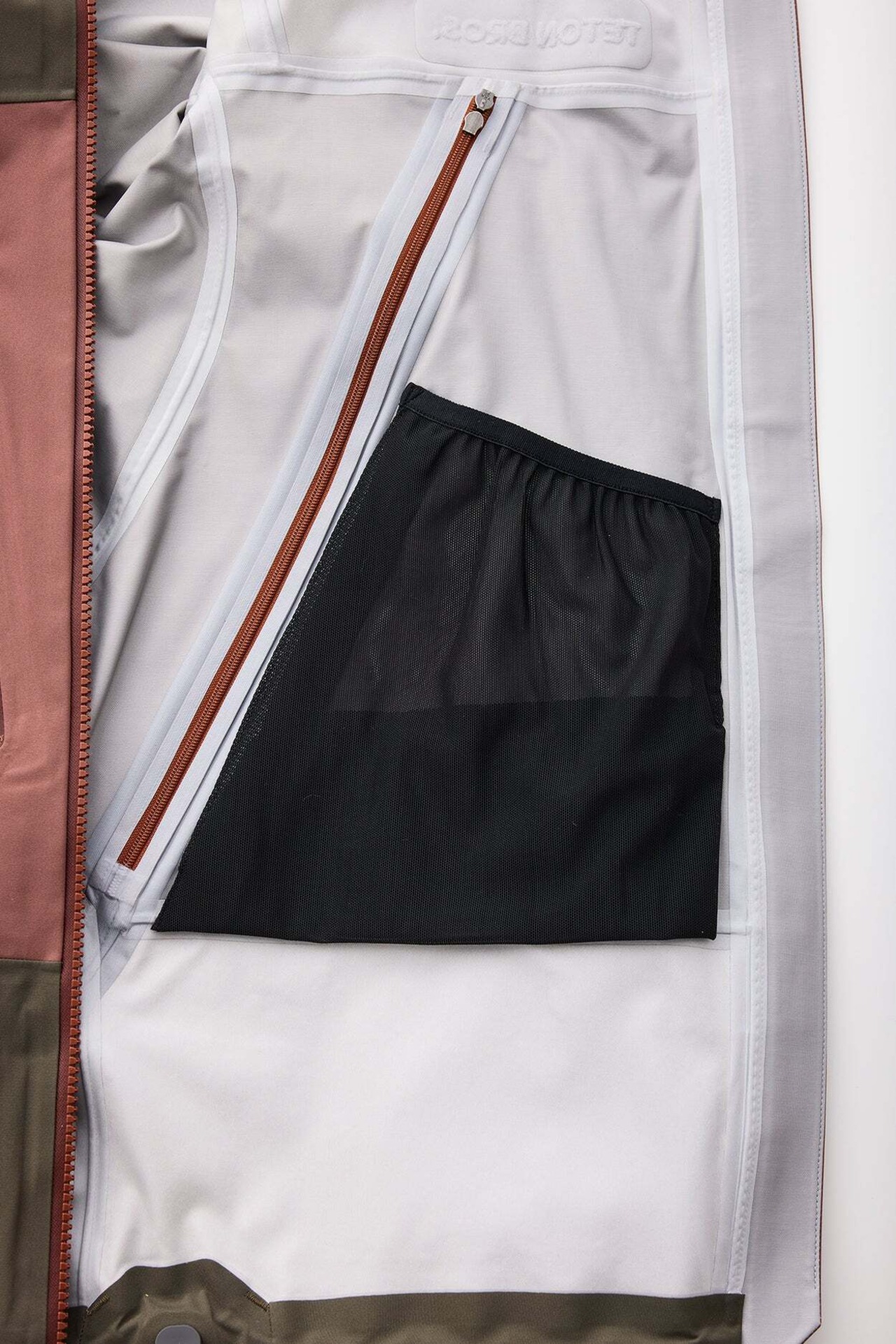 開口部が広いインナーのメッシュポケット。濡れたアイテムやハイクグローブなどの収納に最適で、行動中の体温で乾かすことが可能。