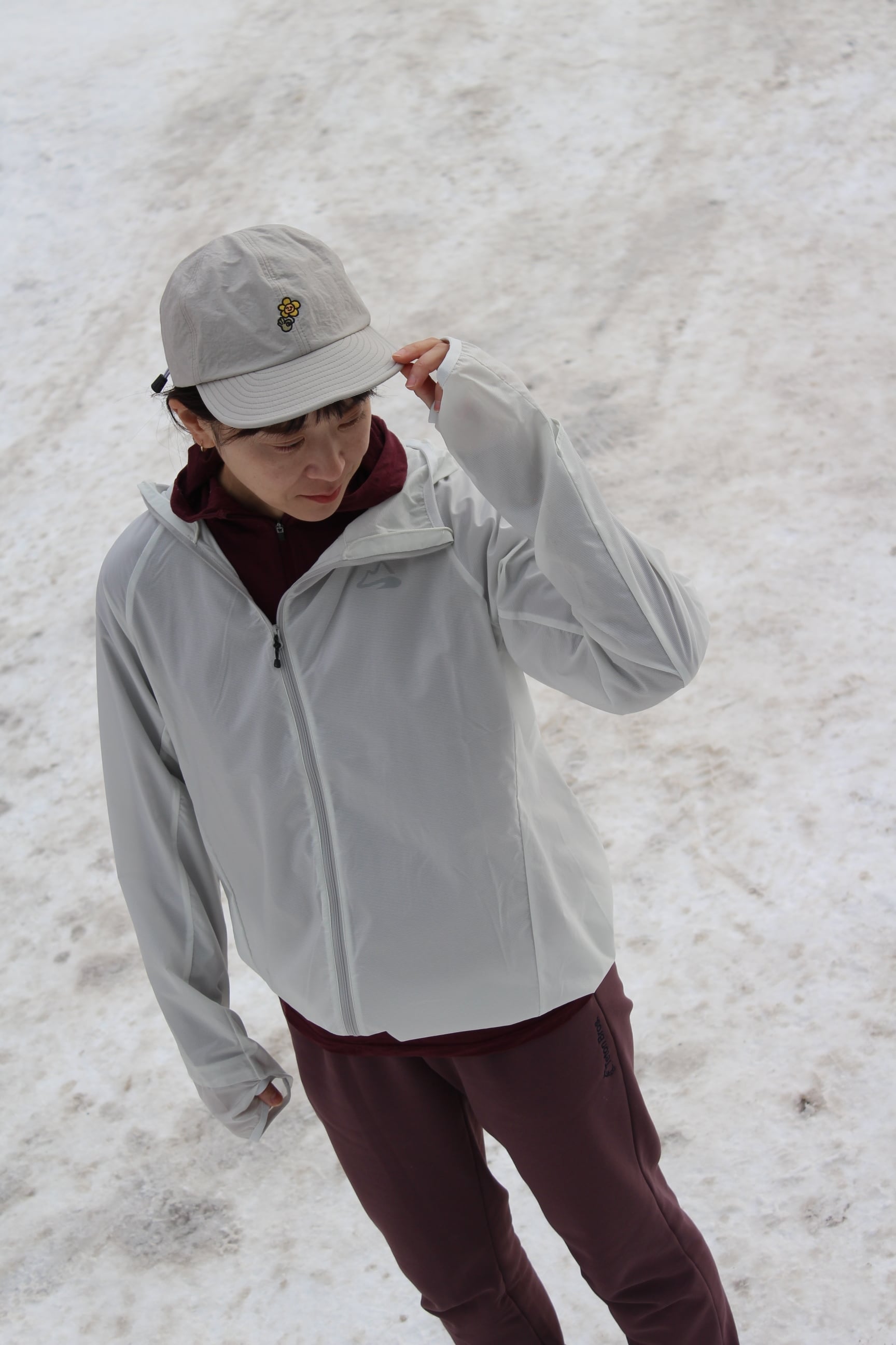 裏地にはメッシュ生地を使用しており、表面には撥水加工も施されています。サイズの調節はドローコードにより、被ったままで簡単に行えます。