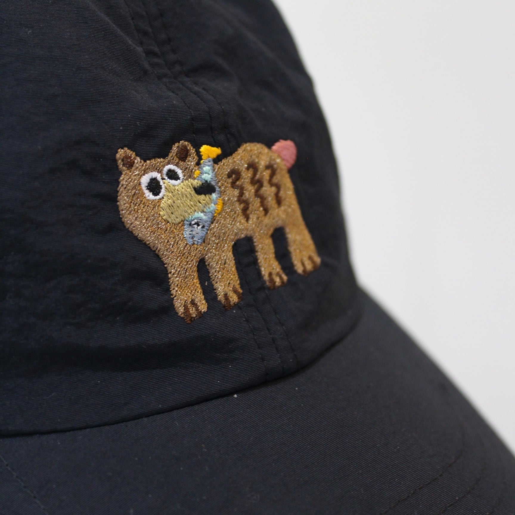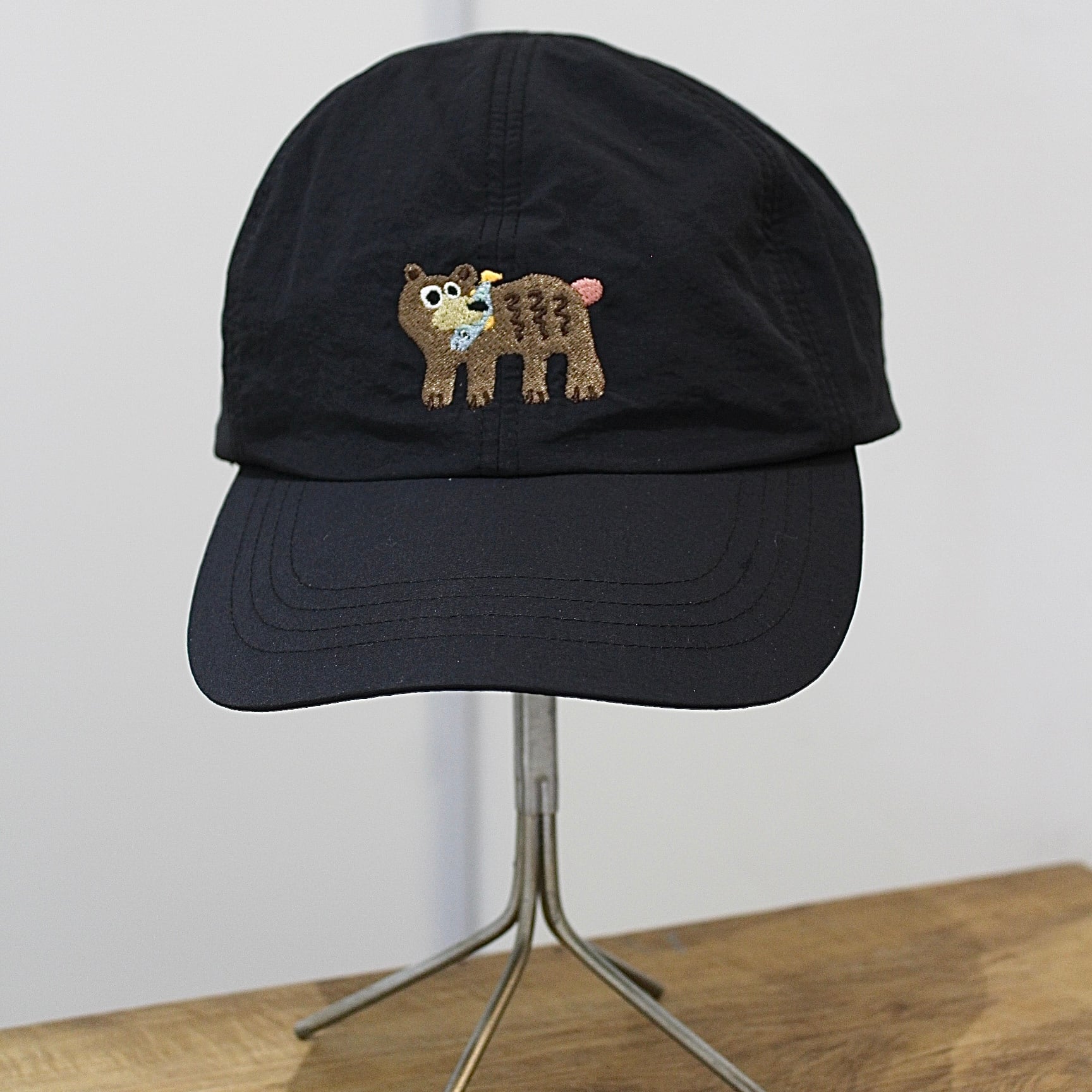 フロントに配した熊の刺繍がアクセントとなり、機能性と遊び心をバランスよく備えたデザイン。