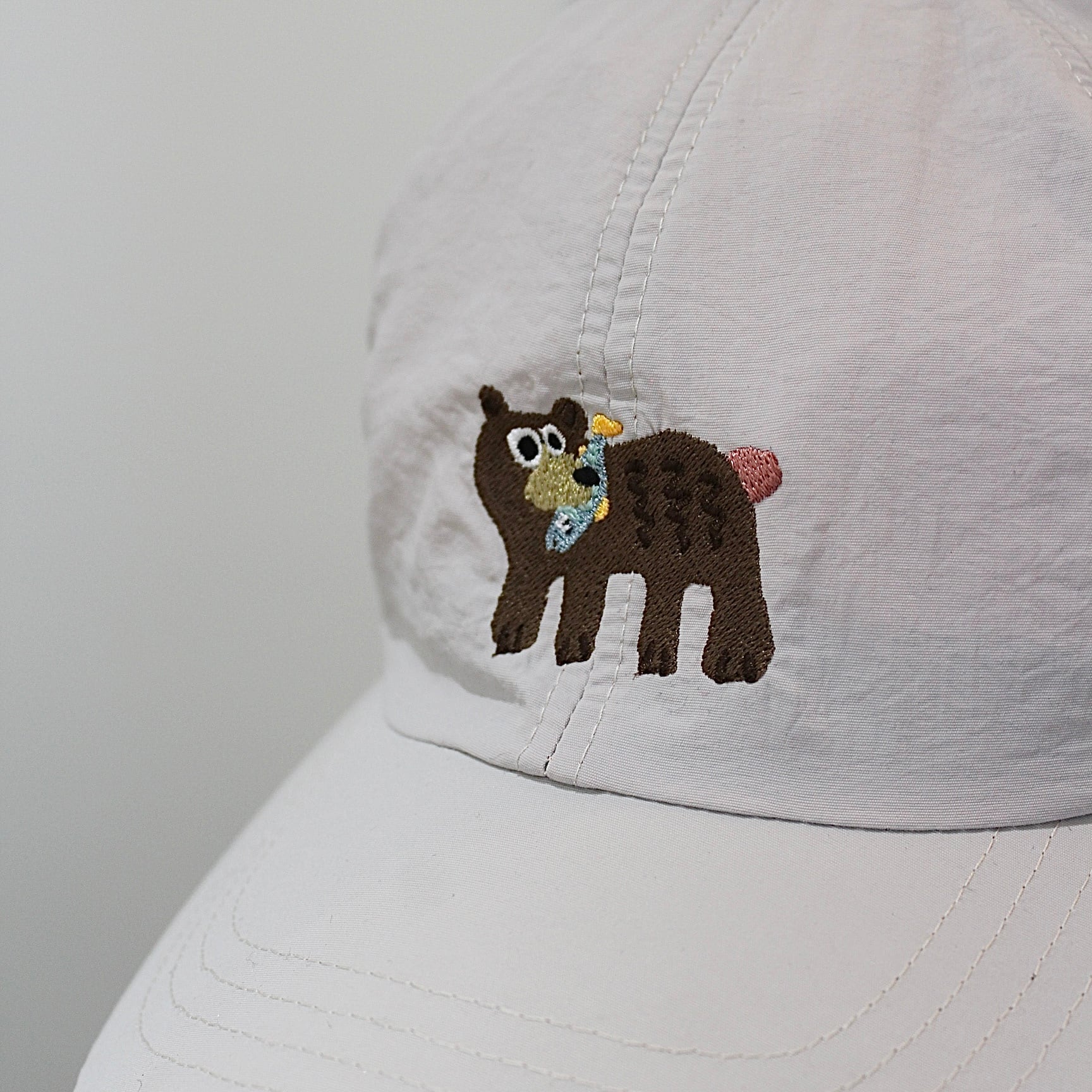 フロントに配した熊の刺繍がアクセントとなり、機能性と遊び心をバランスよく備えたデザイン。