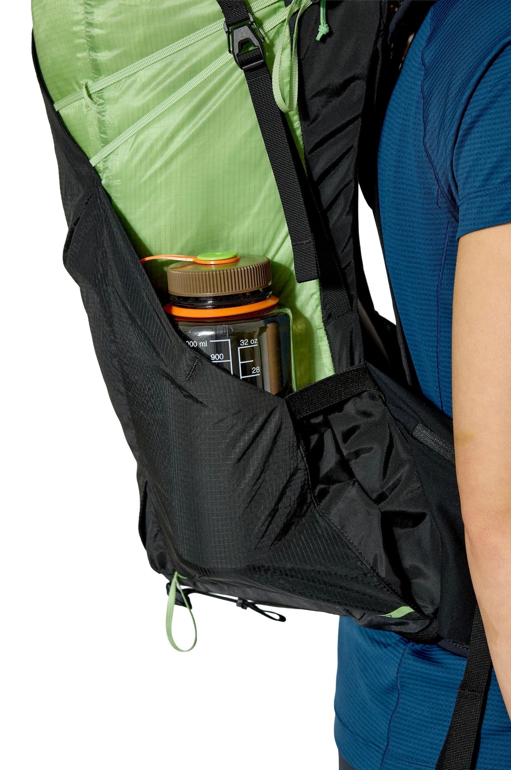 両サイドに1Lボトル対応のスタッシュポケット