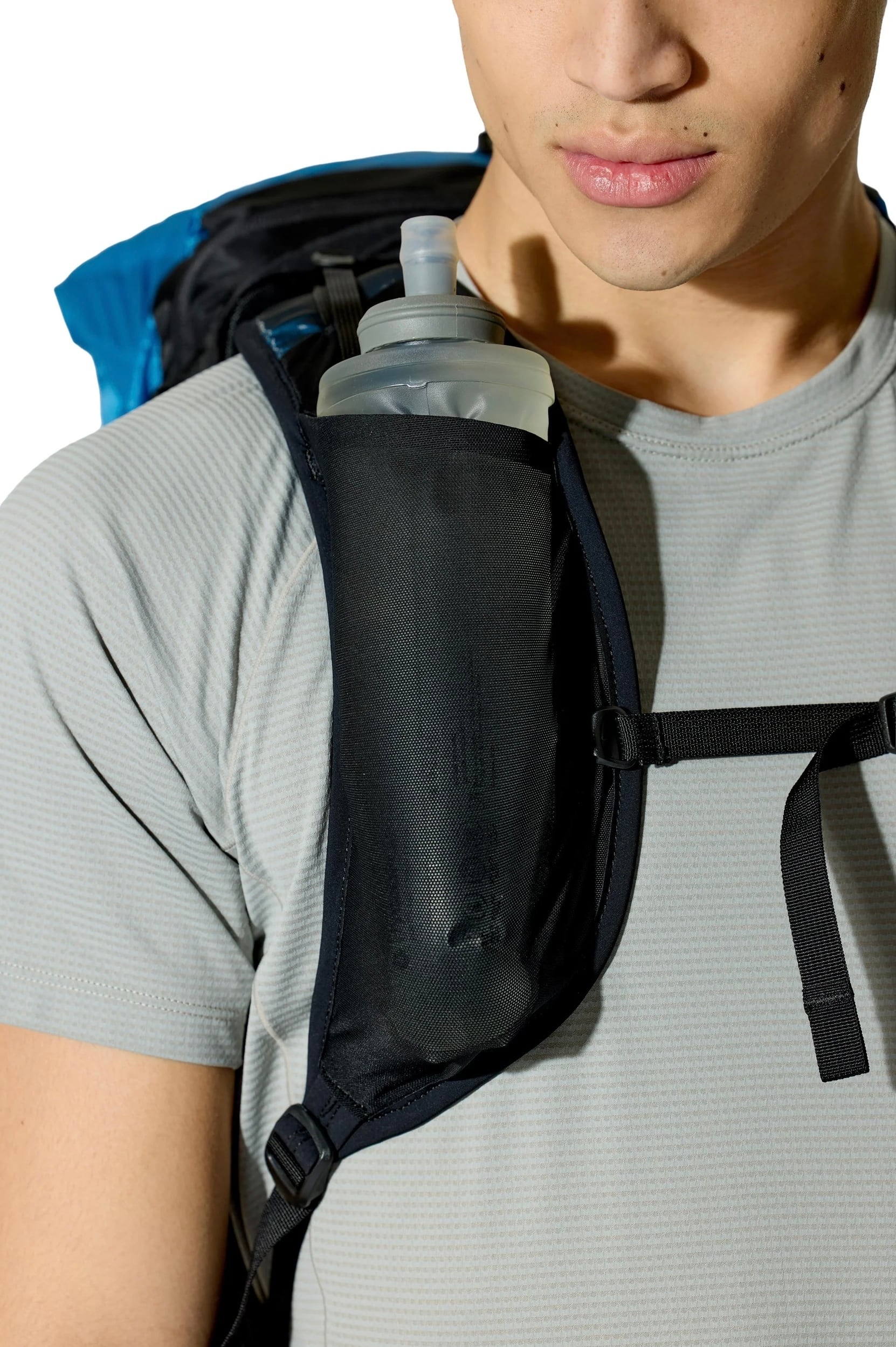 両サイドのスタッシュポケットには1Lのウォーターボトルを収納可能