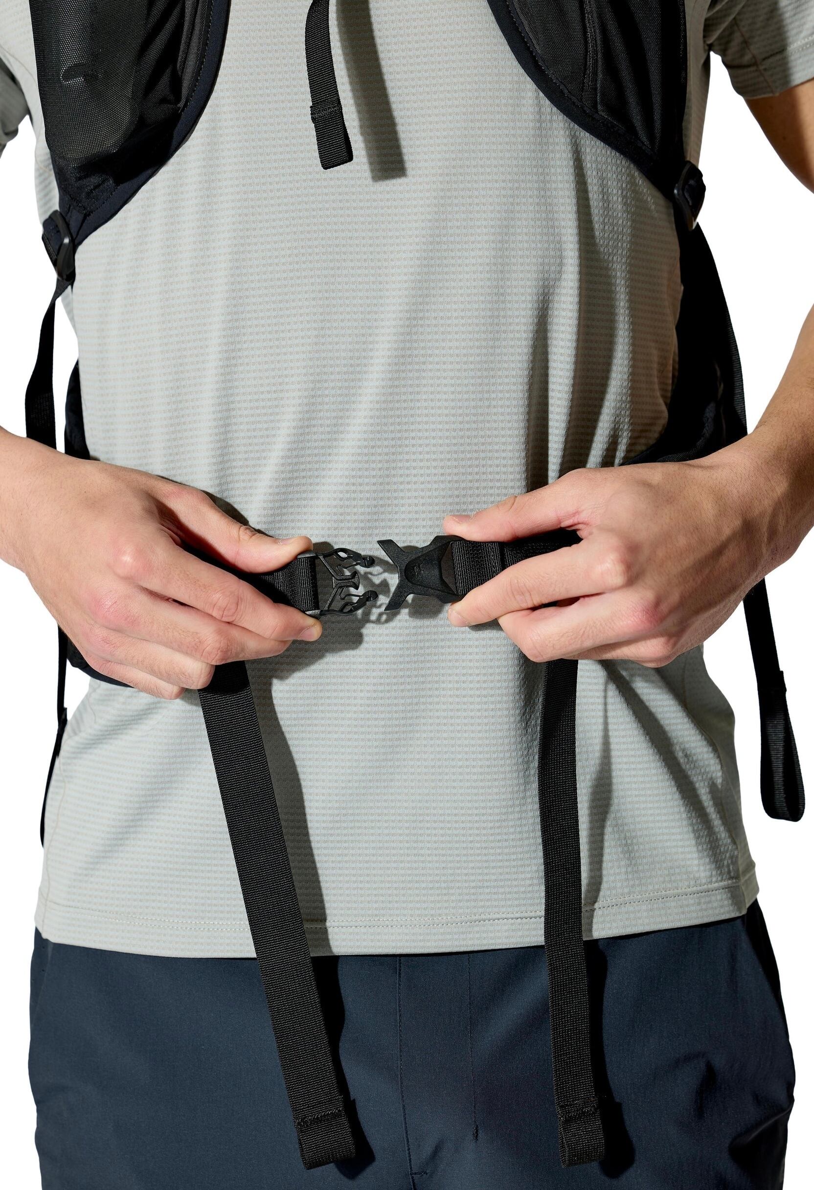 チェストストラップにソフトフラスクや必需品を収納できるポケット付き