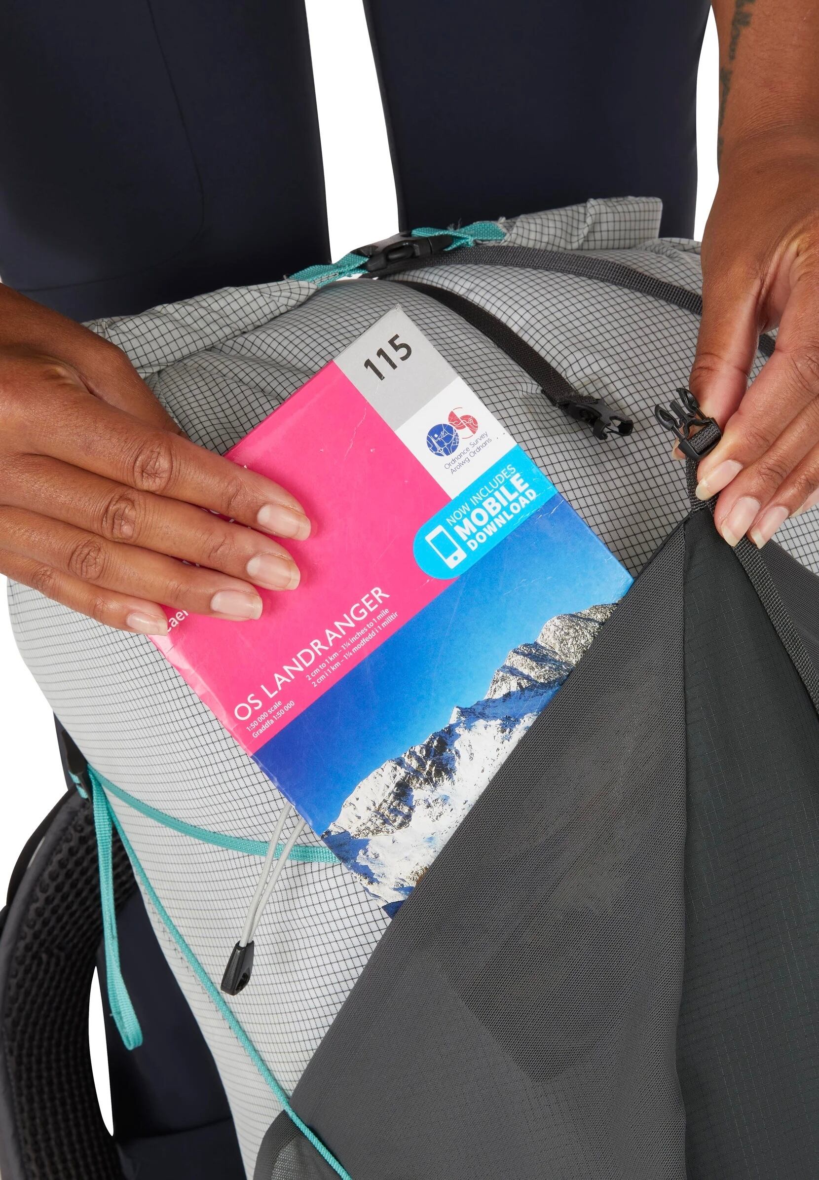 ロールトップクロージャーにより、キットの変更に合わせてパックの拡張と圧縮が可能