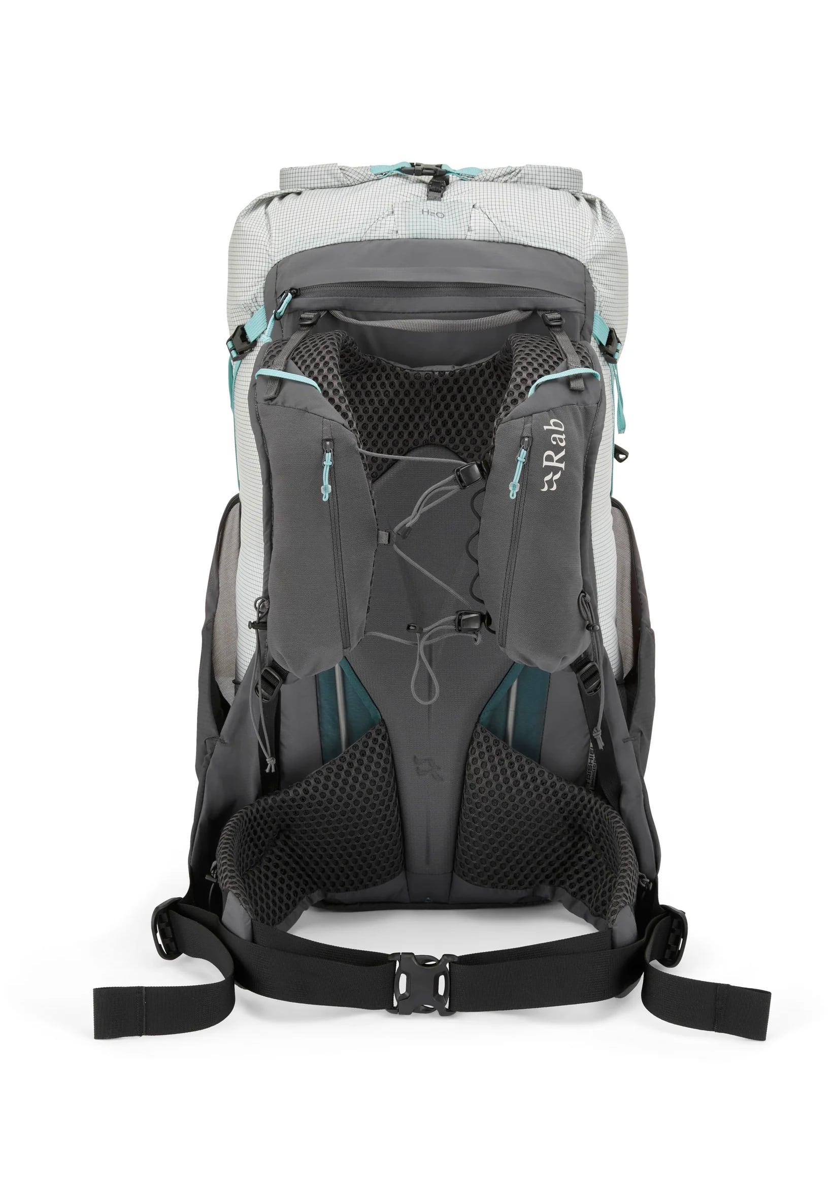 SS24 フロントの下部コンプレッションウェビングループはステッチされていません。バンジーポールホルダーがヒップベルトから移動し、アクセスしやすくなりました。