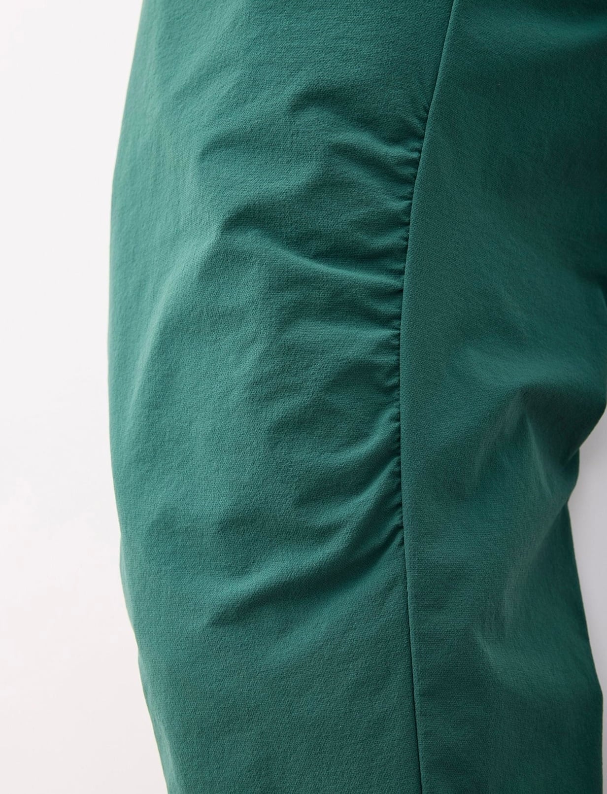 膝周りは、前後で長さが異なるパーツを組み合わせた立体裁断。動きやすさを確保しながら、 余分な縫製がないぶん耐久性に優れる。