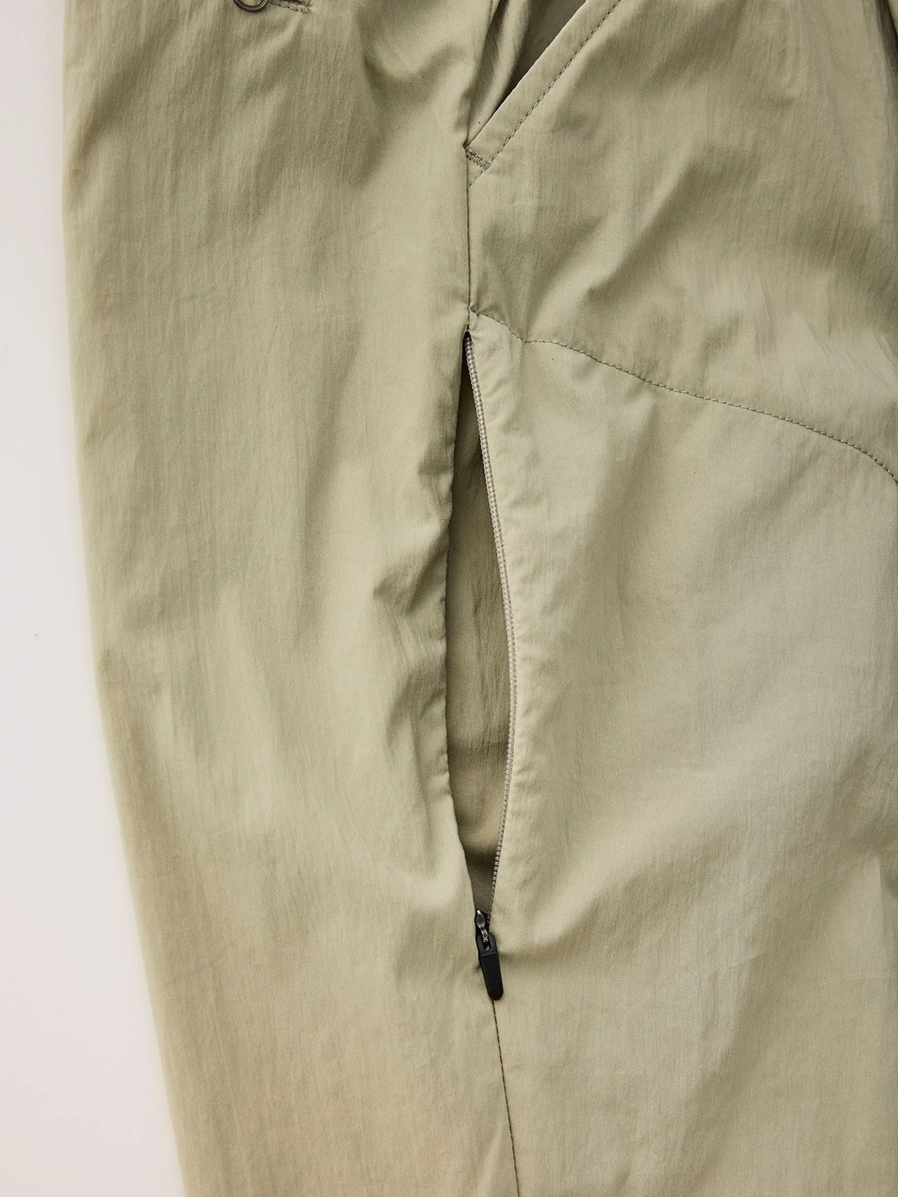 テーパードさせた裾の内側にはリフレクタープリントを施し、折り返すと夜間の被視認性が高まって自転車移動の際などにも安全です。ヒップポケットに収納できるパッカブル仕様で携行性も高く、予備として持ち歩くのにも最適です。